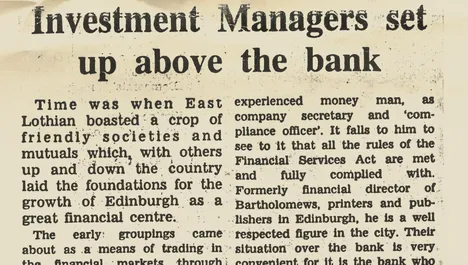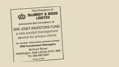 The Big Bang liberalised the UK Financial Markets. Alan McInroy and Victor Wood form McInroy & Wood to accommodate private clients’ needs, provide long-term financial security and peace of mind. Office is in Gullane, East Lothian, Scotland.